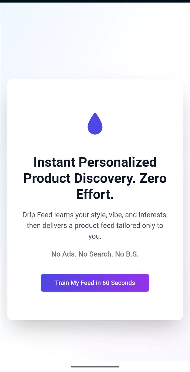 Drip Feed learns your style, vibe, and interests, then delivers a product feed tailored only to you. No Ads. No Search. No B.S.