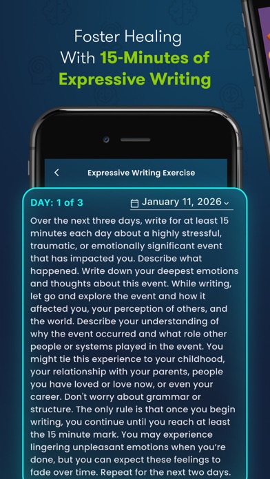 Drawing from years of clinical experience and extensive research, the app incorporates the Expressive Writing method to maximize user benefits.