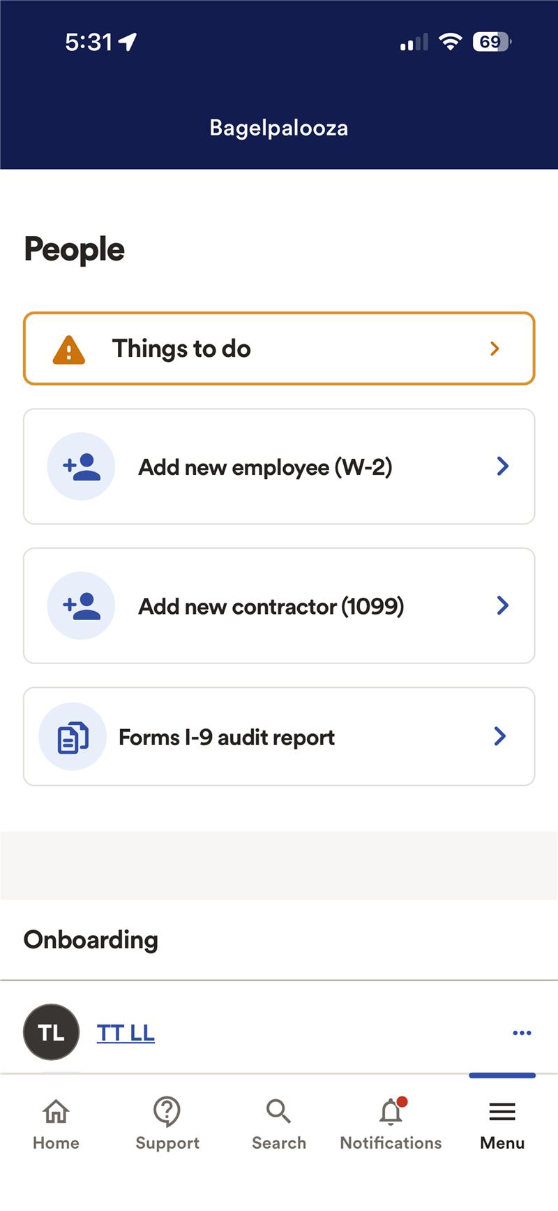 The RUN mobile app was also re-organized by journeys such as hiring a new employee, terminating an employee, managing taxes with all relevant tools/materials included in one place.