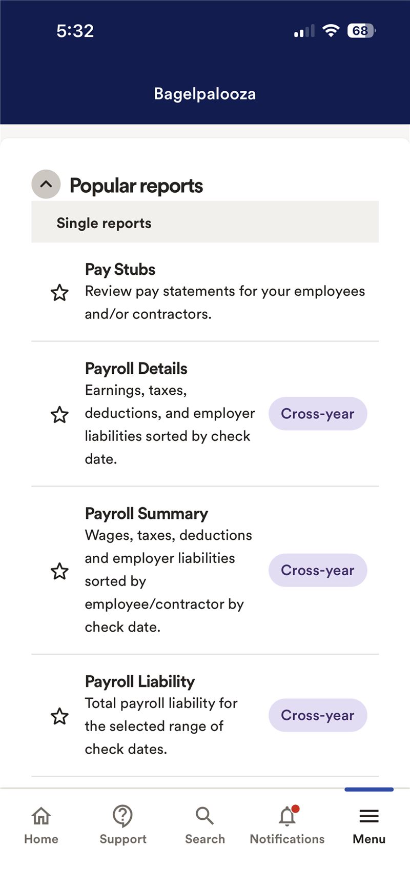 o Intelligent Search lets owners ask payroll and HR questions and instantly access popular resources, favorite reports, frequent tasks and more