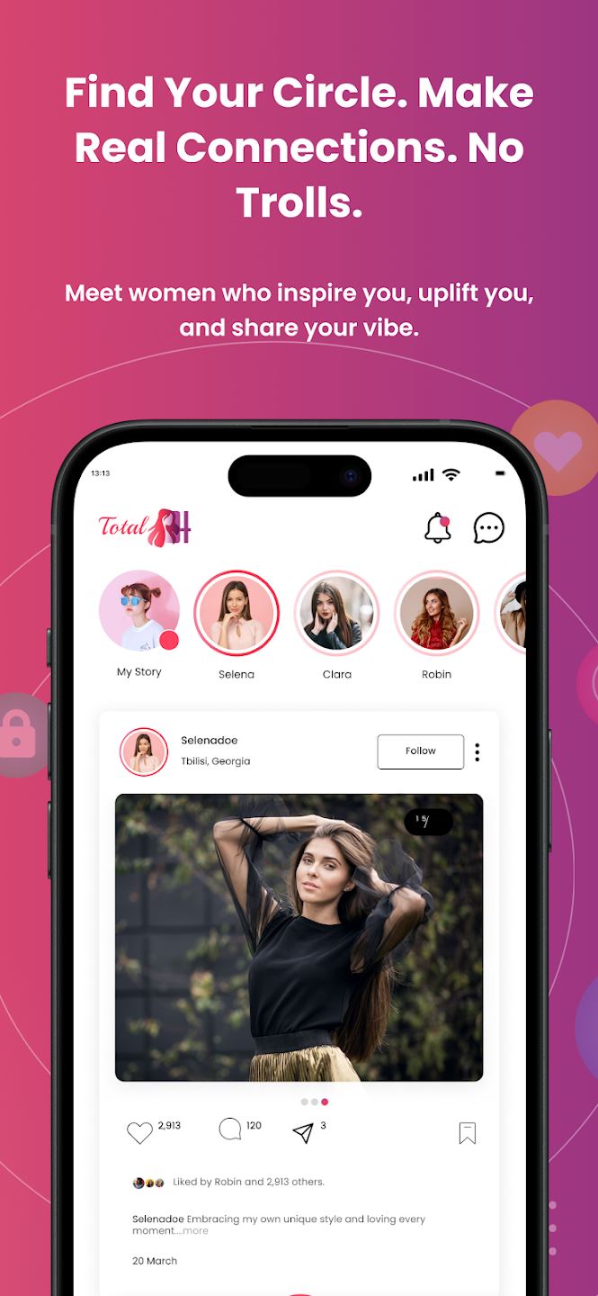 TotalHER is a women-only social app designed to help you connect, create, earn, and grow all in a safe and supportive digital space.